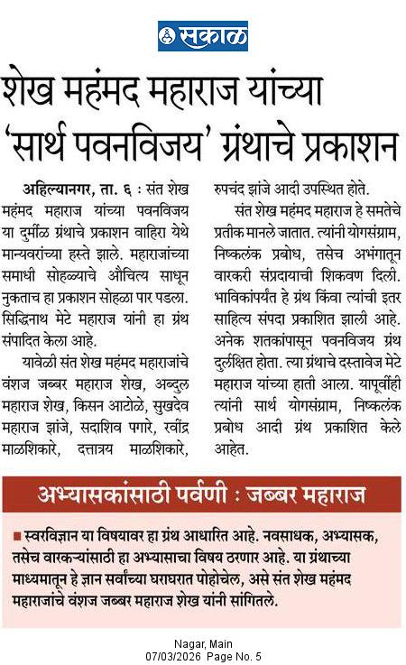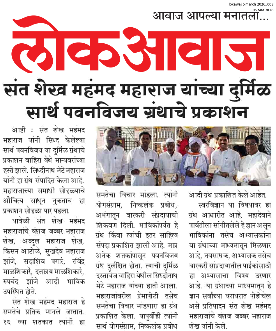 संत शेख महंमद महाराज लिखित योगसंग्राम, निष्कलंक प्रबोध, चरित्र, पवन विजय, अभंग आदी. साहित्य तळागाळापर्यंत पोहचवण्यासाठी काम करणे. कीर्तन प्रवचनाच्या माध्यमातून प्रचार - प्रसार करणे, संपूर्ण मानव जातीसाठी आध्यात्मिक परिपूर्णता स्वतःच्या आनंदासाठी व जगाच्या आनंदासाठी कार्य करणे आदि.